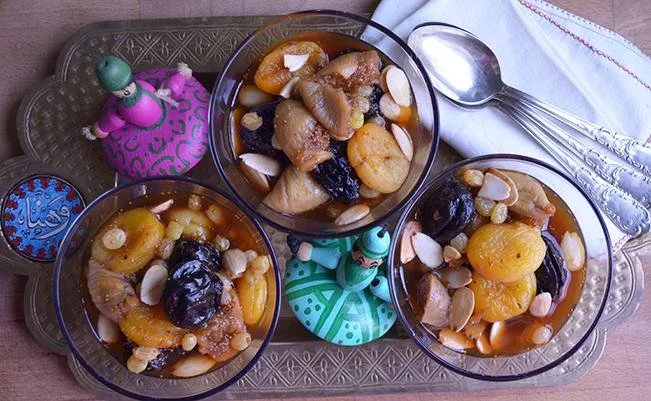 Khoshaf: Perfect for satisfying a sweet tooth without guilt, khoshaf is a vibrant dish made with dried fruits and nuts soaked in water until the liquid transforms into a sweet syrup.