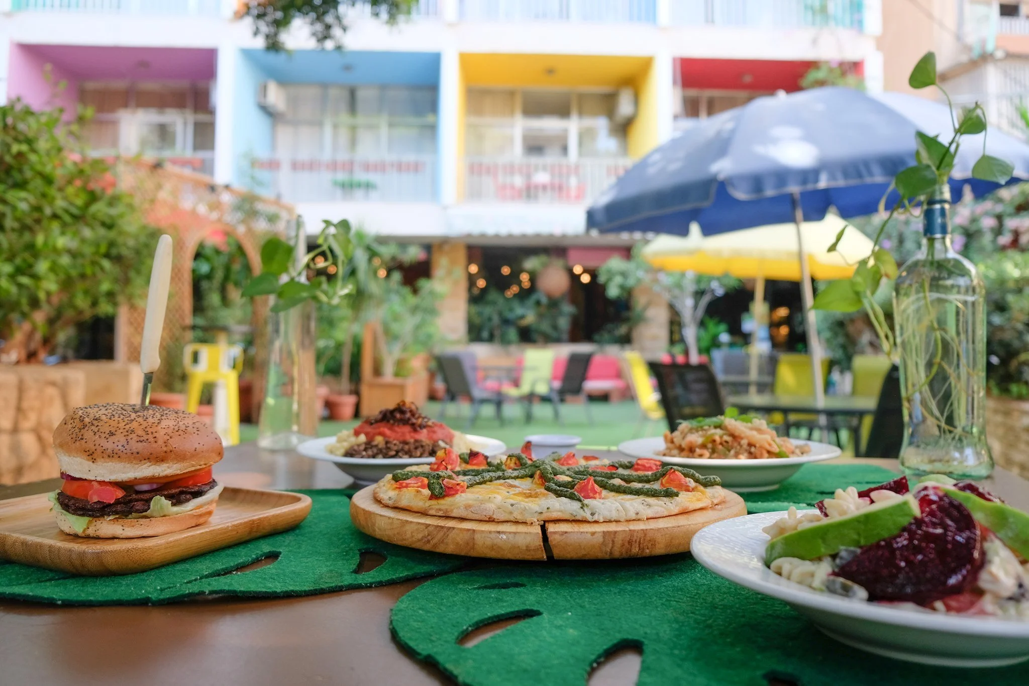 Orenda is a hidden plant-based gem in Beirut known for its minimalist white and pale pink interior, garden courtyard, fairy lights, and plush seating. The extensive menu features delicious vegan dishes such as tofu scrambles and colorful plant-based burgers, along with beer and specialty coffee drinks.