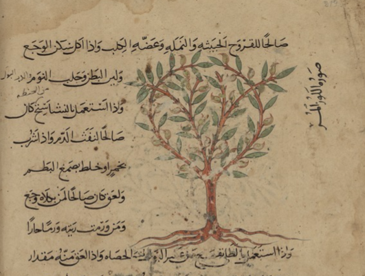 Sweet almonds depicted in an Arabic translation of Dioscorides’ materia medica (Bologna-Biblioteca Universitaria, MS 2954, fol. 57r